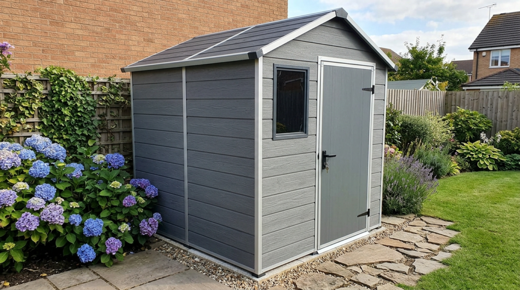 The DARWIN 6×4 grey garden shed represents a pragmatic storage solution for tools and outdoor apparatus, organizing items while simultaneously shielding them from weather conditions.