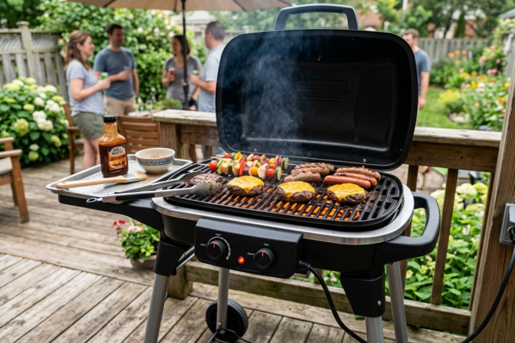 The electric barbecue system enables users to cook outdoors with greater ease and better cooking control. The system provides an easy solution for outdoor events that need cooking facilities without requiring traditional setup procedures.