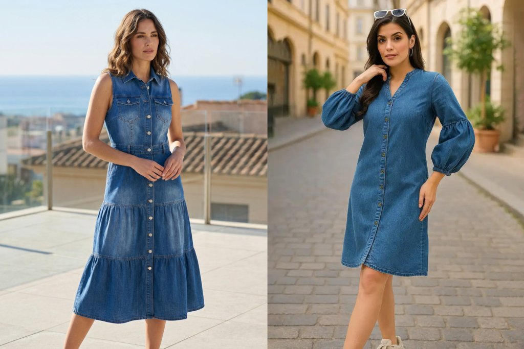 Denim continues to evolve beyond casual wear, offering structured styles that feel both relaxed and refined. The denim puff sleeve midi drop waist dress introduces volume through soft sleeves while maintaining balance with a flowing lower silhouette. This creates a look that feels thoughtfully designed without appearing heavy.