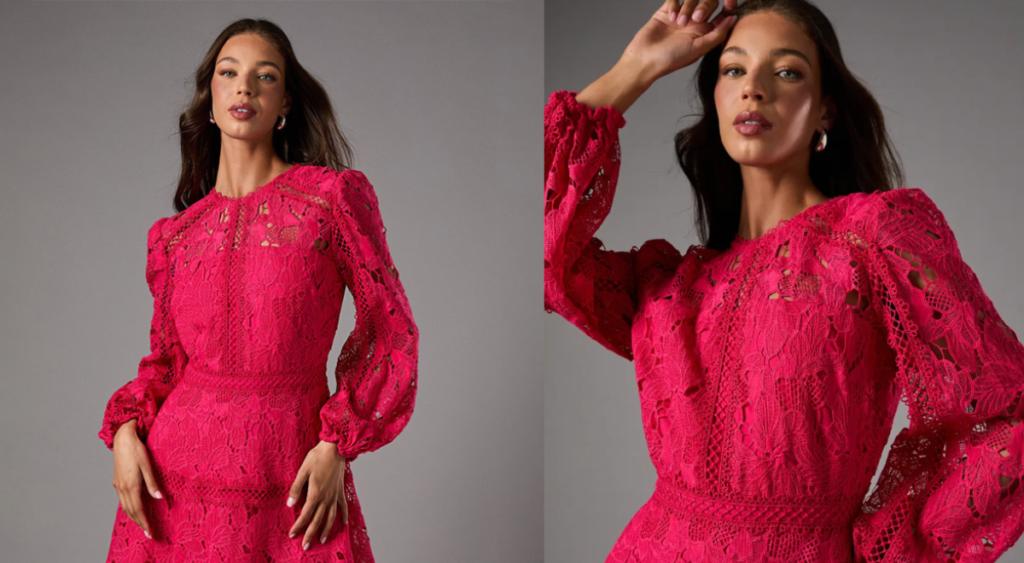 The best wedding guest dresses exist as those which enable you to present your authentic self while maintaining an upscale appearance. You don’t need to follow every trend or wear something extravagant. Sometimes, a simple scalloped strapless midi dress or a timeless lace panelled long sleeve dress can make you feel absolutely stunning.